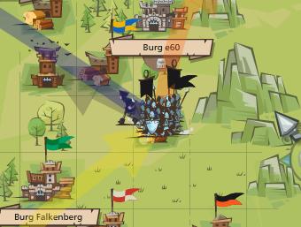 Blaue Pfeile sind Truppen die ihr zur Unterstützung zu einem Allianzmitglied schickt, zwischen euren eigenen Burgen umstationiert oder die von einem Angriff zurück kommen.