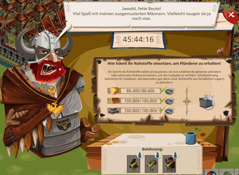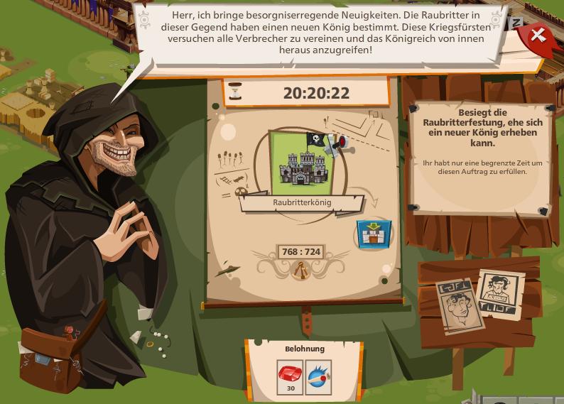 Im Lager des Spions erhaltet ihr den Auftrag den Raubritterkönig anzugreifen. Besiegt ihr ihn, erhaltet ihr ein paar Rubine und habt 7 Tage Ruhe vor Raubritterangriffen. Dieser Schutz zählt dabei aber nur für das Imperium und nicht für die Neuen Königreiche.