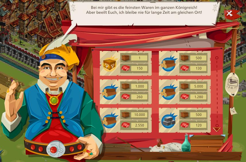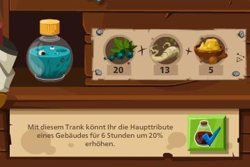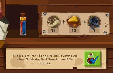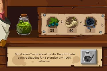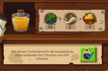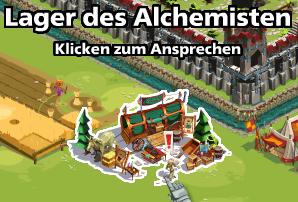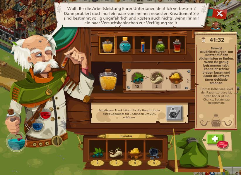 Der Alchemist bietet euch an verschiedene Tränke zu brauen um Gebäude zeitwilig zu verbessern. Dafür müsst ihr ihm durch Angriffe auf Raubritter die Zutaten sammeln.