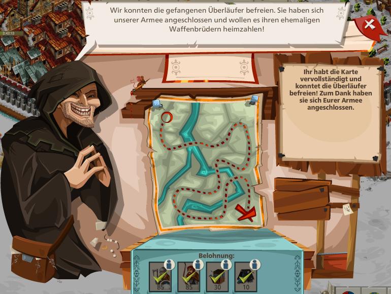 Die Überläufer in den NK funktionieren wie die Reisenden Ritter, ihr müsst bei Angriffen auf Raubritter Kartenteile finden und wenn die Karte komplett ist, schließen sich euch Soldaten des jeweiligen Königreichs an.
