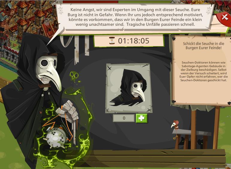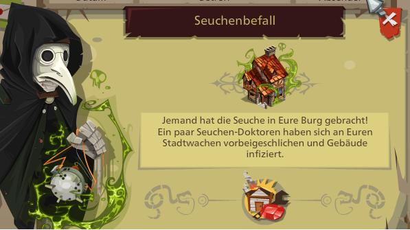 Diese Meldung bekommt euer Opfer. Um die Seuche wieder loszuwerden, können wie bei einem Brand Rohstoffe oder Rubine eingesetzt werden.