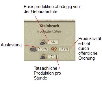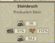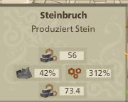 Jeder Steinbruch auf Stufe 9 produziert nur durch den Ausbau auf diese Stufe 56 Steine in der Stunde. Das ist die "Basisproduktion abhängig von der Gebäudestufe".