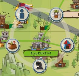 Wenn ihr auf der Karte eine beliebige Burg anklickt, erscheint ein Ringmenü. Davon gibt es 2 unterschiedliche Versionen, eine für Allianzmitglieder und eine für alle Anderen.
